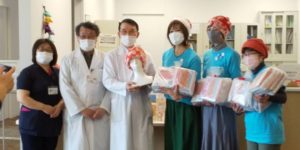 SUNNY サンタがタオル帽子を持ってやってきた(市民病院へ寄贈)