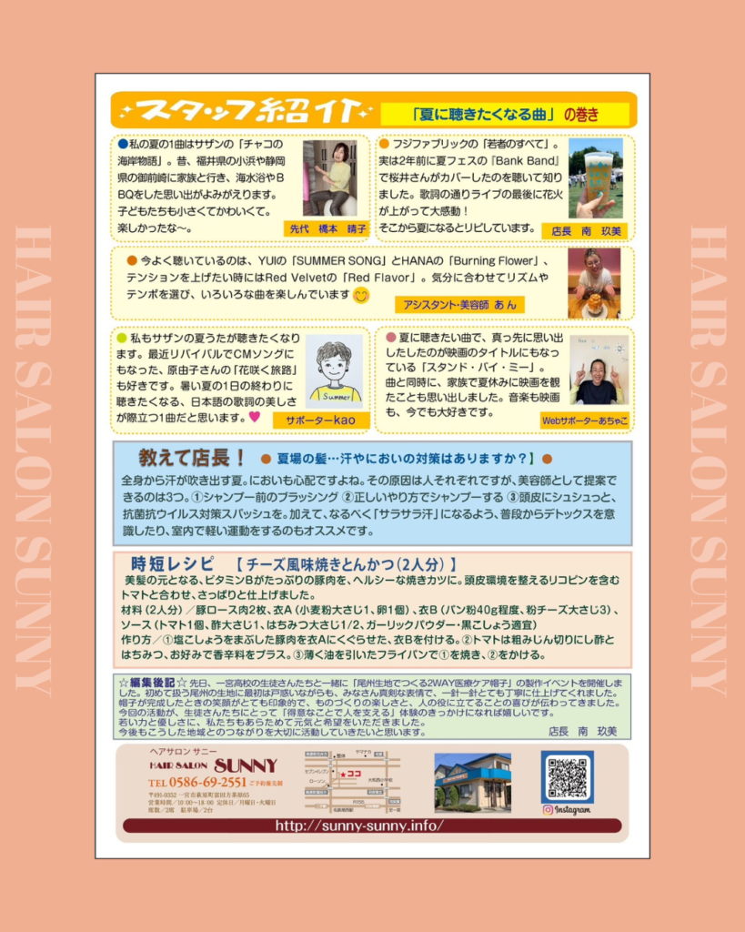 愛知県一宮市にて母が44年前に開業した美容室の2代目として継承して15年目になります。