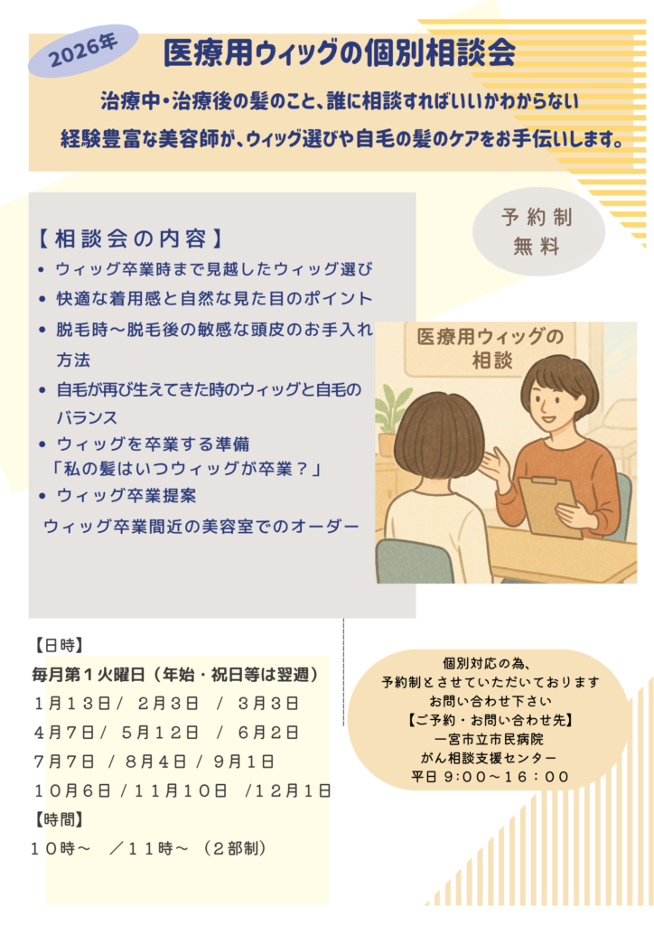 月に一度、一宮市立市民病院での脱毛・ウイッグ個別相談会の