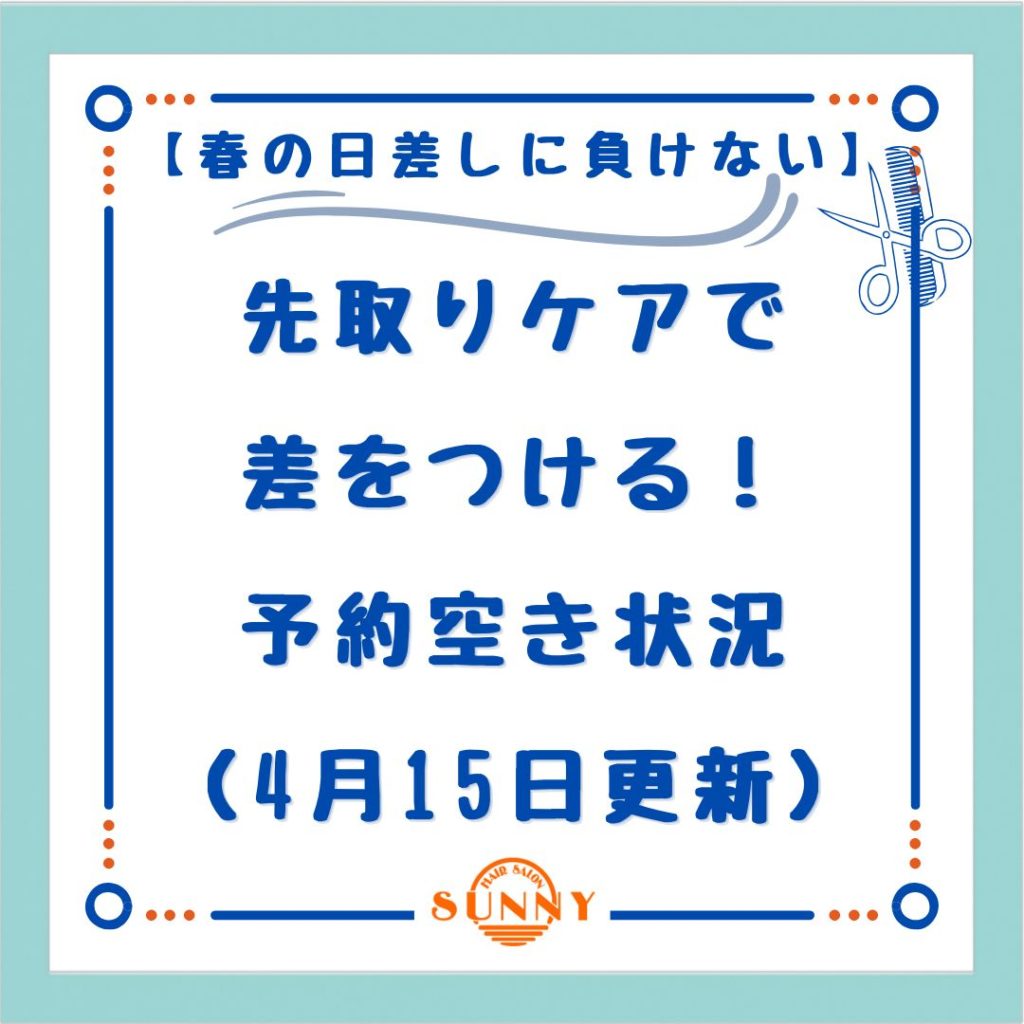 【春の日差しに負けない】先取りケアで差をつける! 予約空き状況(4月15日更新)